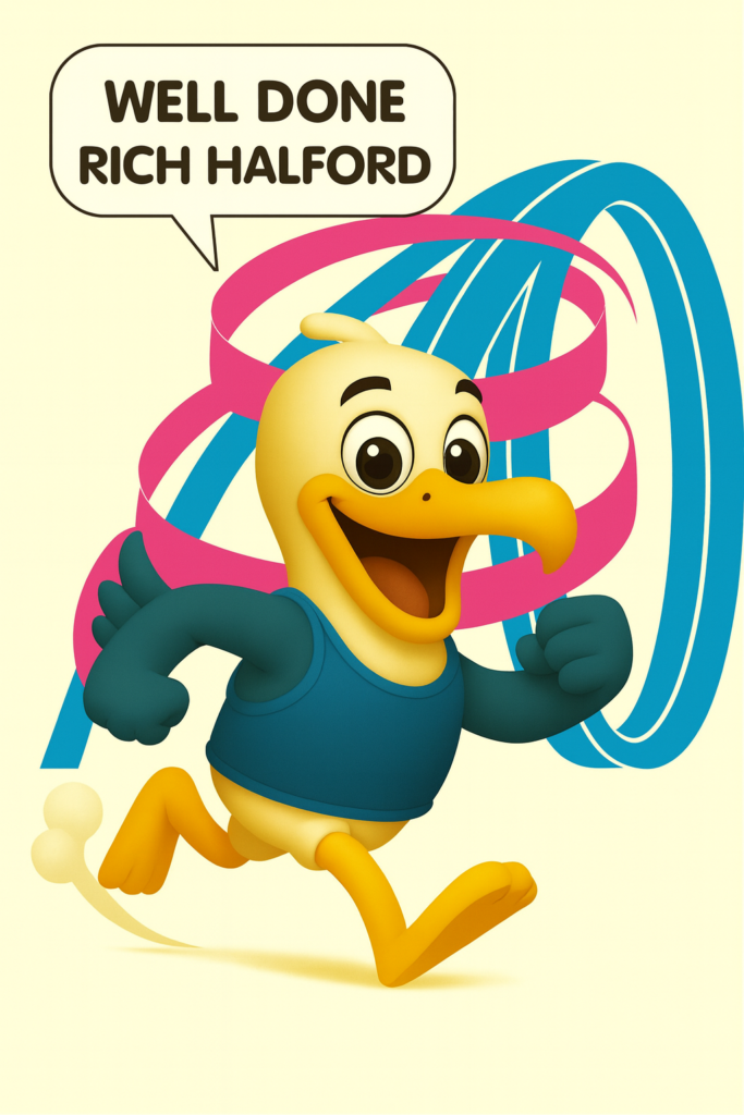 Well done again Rich for doing your bit to help raise funds for our Gymnastic Academy and thanks to everyone who came to the race to support him along today – and finally a special message from Sedric!
