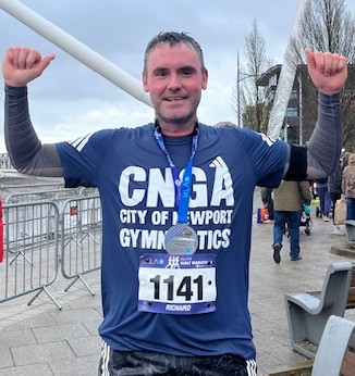 Rich Halford completed his first half marathon today in a time of 1 hour 45 minutes! Amazing – well done Rich. The route took Rich around the outskirts of Newport to Caerleon and back along the river Usk through Newport to the Southern Distributor Road Bridge and back along the main road to the City Centre.